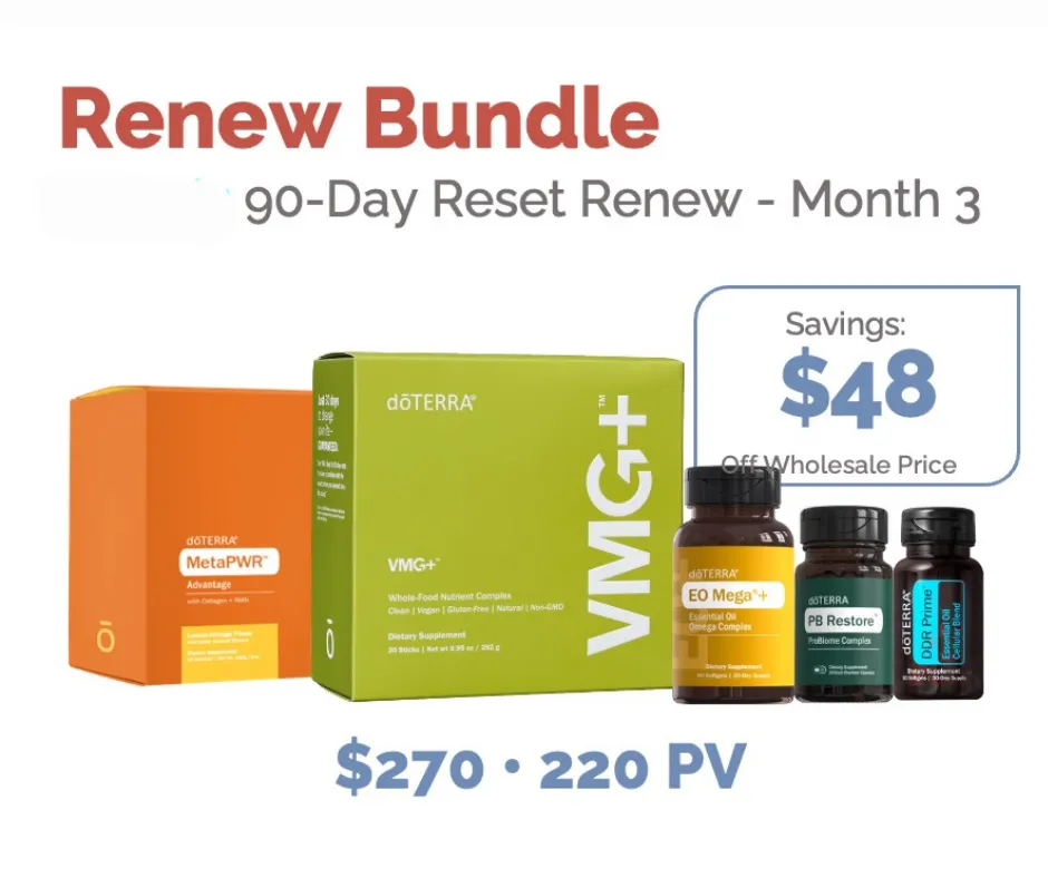 The 90-Day Reset is your simple plan to refresh your routine and feel your best. Each phase combines daily essentials with targeted dōTERRA products to help you activate, build, and sustain real wellness one month at a time.
